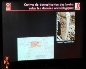 Quand on analyse les archives fossiles, les témoins directs de l’évolution, il peut être difficile d’identifier les espèces et de distinguer les formes sauvages et domestiquées. Des erreurs sont possibles, mais cela permet d’avoir accès à l’information génétique de ces formes passées. Le centre de domestication des bovins est au Croissant fertile : au Sud de l’Anatolie, au Nord de la Surie et en Irak comme à Göbekli Tepe vers 11 000 : ce site est considéré comme le premier temple construit par l’homme (6000 ans plus vieux que Stonehenge). On y voit des aurochs gravés. C’est un symbole fort.