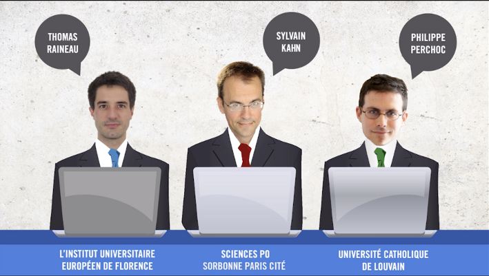 Le Mooc offre des possibilités variées d’innovation et de langages pédagogiques. Il offre aussi la possibilité de proposer cet état d’esprit sur l’enseignement de la construction européenne à un nombre potentiellement illimité de personnes. Cela faisait donc deux ou trois ans que l’idée de faire un mooc sur l’Europe me traversait l’esprit. Comme souvent, il y a eu un concours de circonstance. Cela faisait longtemps que Philippe Perchoc et moi avions envie de préparer un cours ensemble au sein du très dynamique master affaires européennes de Sciences Po, en raison de nos affinités pédagogiques. Je connaissais moins Thomas Raineau, mais je savais que son goût pour la rigueur, le dynamisme pédagogique et à la diffusion des connaissances étaient en écho au nôtre. J’avais aussi proposé à Marion Gaillard, avec qui nous préparons depuis plusieurs années des cours ensemble à Sciences Po, mais son emploi du temps ne lui a pas permis de rester dans l’équipe dans la phase de réalisation et de production. Lorsque Sciences Po, où je suis en poste, a lancé un appel à projet en interne, j’ai déposé une première proposition de structure et d’activités incluant notamment un serious game, en l’occurrence un jeu de rôle, par séance hebdomadaire. Cette proposition acceptée, nous l’avons affinée avec Philippe lorsqu’il s’est agit de la formuler pour l’appel à projet de la Communauté d’universités et d’établissement Sorbonne Paris Cité, dont Sciences Po et Paris 3 sont deux des membres.