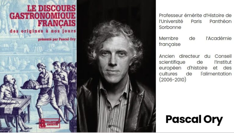 - Pascal Ory, Professeur émérite d’histoire contemporaine à la Sorbonne, spécialiste d’histoire culturelle, pour qui le repas gastronomique est aussi un discours.