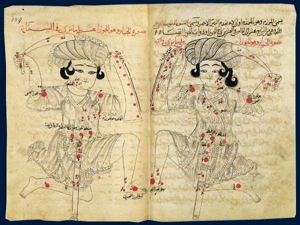 Il existe de nombreuses copies illustrées de ce traité, commandé en 965 par le sultan bouyide ‘Adûd al-Dawla au grand astronome ‘Abd al-Rahmân al-Sûfî. Il y décrit le système des constellations inspiré des Grecs. Le manuscrit, probablement exécuté sous les Seldjoukides, présente chacune des 48 constellations connues sous deux angles différents. La constellation d’Orion dans l’hémisphère sud est montrée ici.