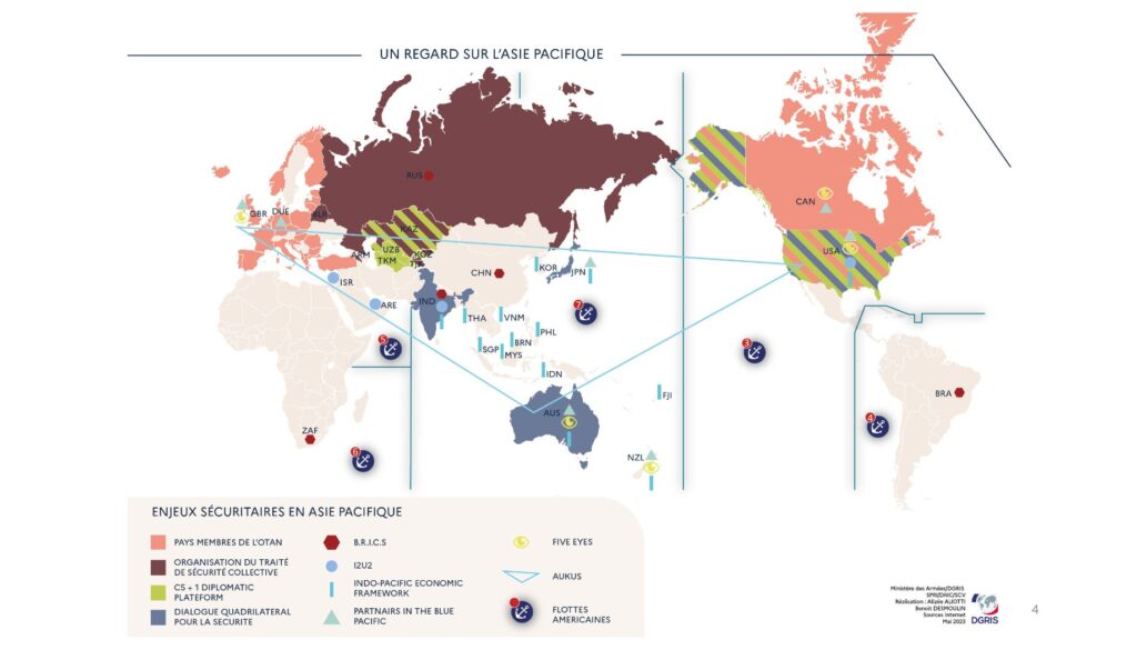 L’Europe en est absente mais c’est un espace naturel d’expansion pour l’Inde, la Chine et les États-Unis et bien d’autres puissances. La France est présente un peu partout dans cet espace au titre de ce qu’on appelait jadis « les confettis de l’empire ». Il y a un vrai défi parce qu’elle y est présente partout et en même temps d’aucuns considèrent qu’elle est une sorte de « nain politique » puisque ses capacités sur place sont extrêmement réduites. On a donc le paradoxe d’une présence française présente partout mais aux moyens très limités.