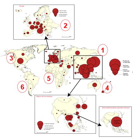 C’est avant tout un phénomène de proximité à l’étranger : vers la Thaïlande, pas le Japon, la Corée du Sud et le Vietnam. Puis vers l’Europe