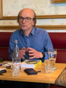 En guise d’apéritif, Laurent Testot, arrivé de Grenoble depuis plusieurs jours, est venu présenter, son dernier ouvrage sur l’Anthropocène, intitulé Vortex. Faire face à l’Anthropocène (coécrit avec Nathanaël Wallenhorst). Le compte-rendu de conférence et le podcast sont en cours de préparation.