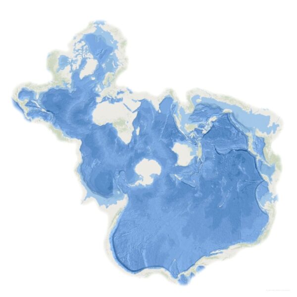 Pour l’Arctique, il y a cette projection du monde dite « vu par un poisson ». Car la cartographie traditionnelle met souvent en avant les continents, réduisant les océans à des espaces vides entre les terres. Avec la projection de l’océanographe et géophysicien sud-africain Spilhaus centrée sur les océans, on réorganise le monde sur l’eau, l’unité des océans et leur importance pour la vie sur Terre.